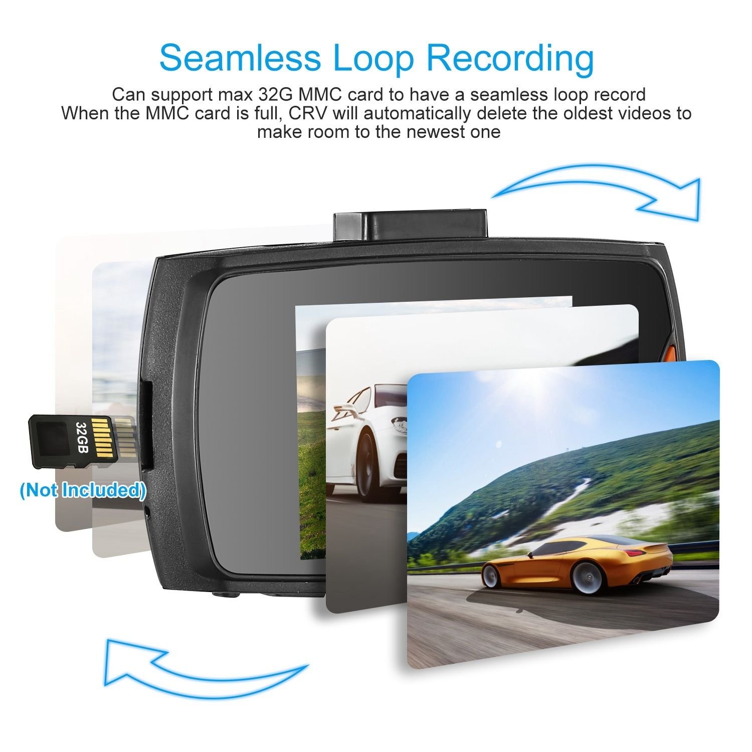 **SEAMLESS LOOP RECORDING*:Can support max 32G MMC card to have a seamless loop record. When the MMC card is full; our car video recorder will automatically delete the oldest videos to make room to the newest one.
