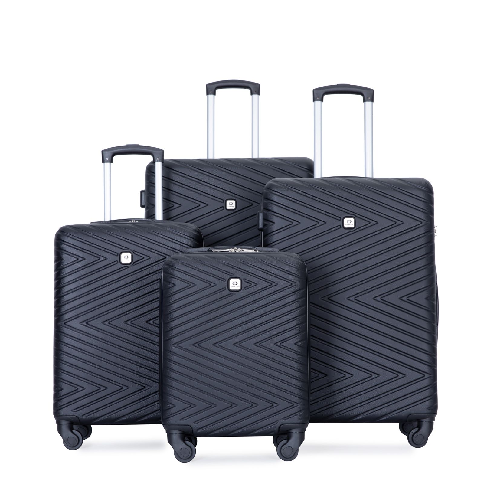 luggage 4-piece ABS lightweight suitcase with rotating wheels, 24 inch and 28 inch with TSA lock, (16/20/24/28) BLACK - as Pic