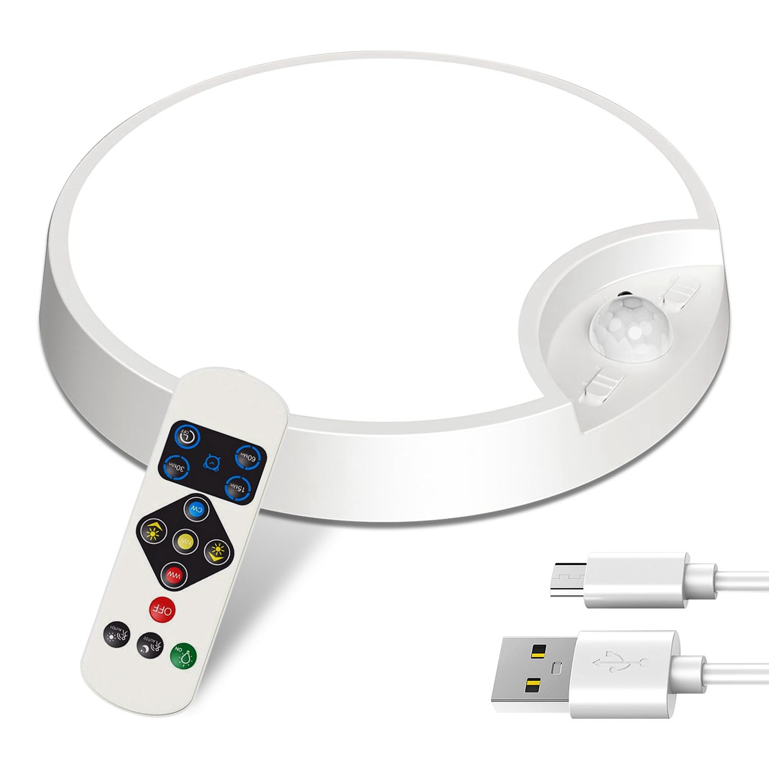 *Long-lasting & USB Rechargeable*:Comes with a USB cable for portable charging. The indicator turns red when charging and green when fully charged. Built in 8000mAh rechargeable battery,our wireless ceiling light can run up to 700 minutes for continuous lighting and sense 2500 times. After fully charged for 5 hours,it is capable of 12 months’ normal use.
