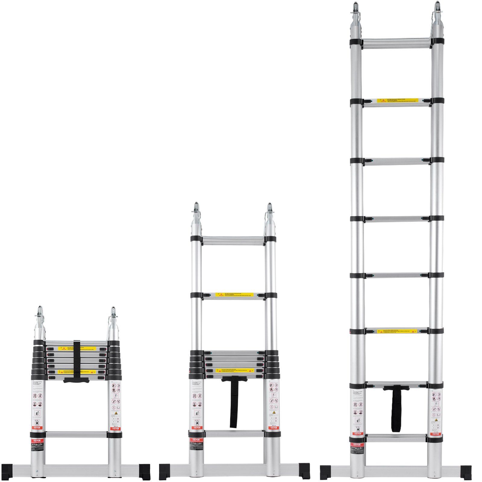 5.Versatile Design: The telescopic ladder features a design that allows for manual height adjustment, fully extending to 16.4 ft and retracting to a compact height of 3 ft, making it perfect for various tasks, from indoor projects to outdoor maintenance, all while ensuring easy storage and transport.